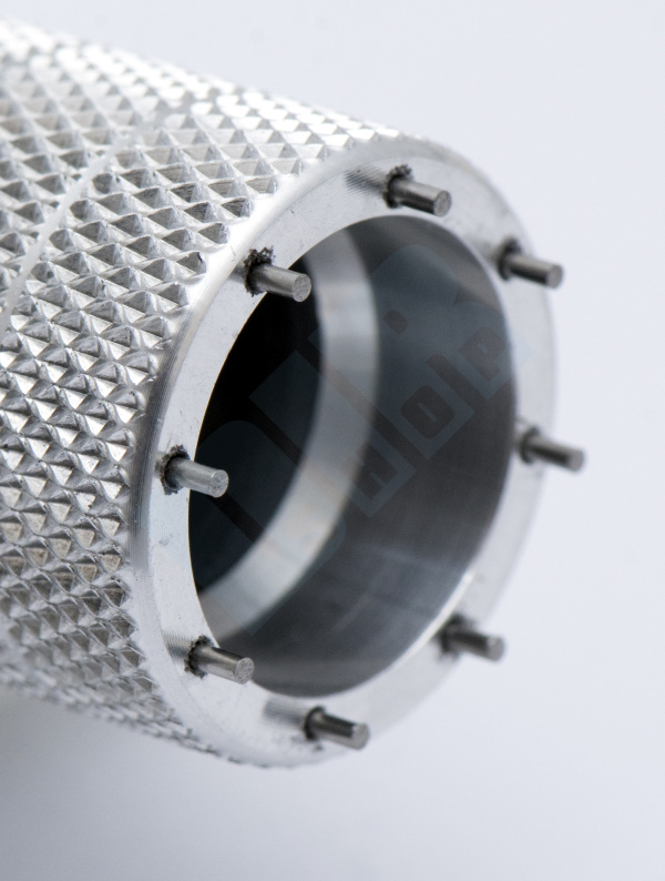 Nástroj je vyroben z hliníkové slitiny se zalisovanými piny z tvrzené oceli.